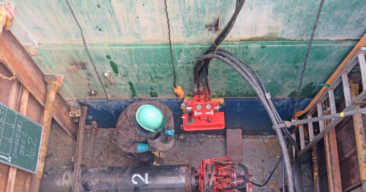 【管路DB整備事業】改良型伏越工(鋼管さや管推進工φ400)を施工します。