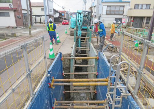 【管路DB整備事業】新しく鋼製ケーシング立坑工を施工しました。 ホームUncategorized タグ: Uncategorized 最近の出来事 最近の現場 2025-07-21 No.257-1(発進立坑) 鋼製ケーシング立坑工(φ2.000 圧入掘削 深さH-5.830m) 投稿者 dev-email@wpengine.local 関連投稿 タグ: Uncategorized 【管路DB整備事業】改良型伏越工(鋼管さや管推進工φ400)を施工します。 2025-12-26 すべて読む タグ: Uncategorized 【管路DB整備事業】県道喜多方線交差点から北側の路線を、新たに管きょ工(開削工)を施工しています。 2025-12-26 すべて読む タグ: Uncategorized 【管路DB整備事業】改良型伏越工の施工箇所に地盤改良のための、薬液注入工を施工中です。 2025-12-06 すべて読む タグ: Uncategorized 最近の現場 住宅を解体しています。 2025-11-28 すべて読む タグ: Uncategorized 最近の出来事 最近の現場 【管路DB整備事業】役場庁舎前の路線 地下水との水替えに苦戦しながら、布設・設置しています。 2025-09-17 すべて読む タグ: Uncategorized 最近の現場 【管路DB整備事業】下流域の推進完了しました。 2025-09-17 すべて読む 投稿ナビゲーション 前の投稿次の投稿